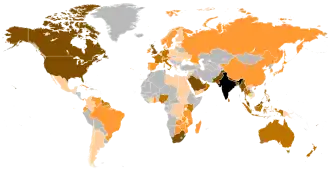 ![]() Mapa da diáspora indiana ao redor do mundo. | |