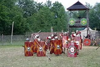 A legião romana aperfeiçoou a organização da infantaria em unidades e subunidades, o que hoje é base da organização dos exércitos modernos. Uma legião era dividida em dez coortes, por sua vez divididas em um número variável de centúrias, que eram compostas por cerca de cem homens cada. Ao total, a variar em função do período histórico, a legião romana podia ter entre 3 mil a 6 mil homens.