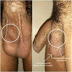 No escroto, são causas comuns a varicocele, alterações na produção ou na morfologia dos espermatozoides e infecções do trato reprodutivo.[6]