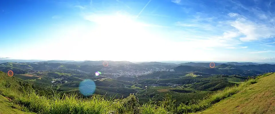 No estado de São Paulo, é comum encontrar paisagens montanhosas, as quais atrem turistas de todo o país. Nas imagens, de cima para baixo, Vale São Bento do Sapucaí, na região do Vale do Paraíba; Serra Negra e Pico dos Marins.