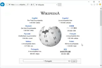 ![]() Internet Explorer 11 exibindo a página inicial da Wikipédia no Windows 10 | |