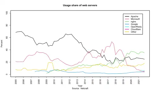 - ↑ netcraft (fevereiro de 2012). «visao geral do servidor web IIS». netcraft