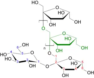 A inulina é um frutano, polissacarídeo da frutose com uma unidade de glicose terminal. de origem vegetal, formula C6nH10n+2O5n+1 e CAS nº 9005-80-5. O polímero da frutose é particularmente abundante nas raizes da chicória, de onde é extraída industrialmente. Também é encontrada em outros vegetais que pertencem a família das Asteraceae, principalmente nos tubérculos do tupinambo ( Helianthus tuberosus) e cebolas da Dahlia. No final da temporada, com as primeiras geadas, a inulina sofre uma hidrólise que provoca uma baixa do seu rendimento.