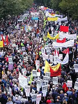Manifestantes antiguerra em Londres, 2002