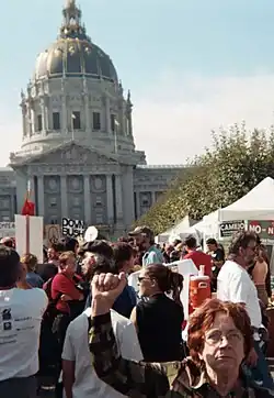 Em fevereiro de 2003, ocorreu em São Francisco, Califórnia, um dos maiores protestos antiguerra nos Estados Unidos. Entre 60 000 e 200 000 pessoas se manifestaram contra o conflito