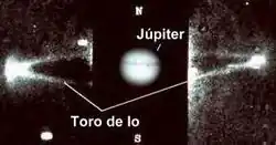 Devido à rápida rotação do campo magnético de Júpiter, essas partículas formam um toro de radiação intensa, à volta de Júpiter, que brilha intensivamente em luz ultravioleta. As partículas que escapam deste toro são parcialmente responsáveis pela invulgar e grande magnetosfera de Júpiter. Dados recentes da Galileo mostram que Io pode ter o seu próprio campo magnético.