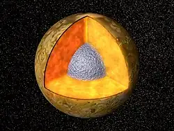Diferentemente das luas do sistema solar exterior, Io apresenta grandes semelhanças com os planetas telúricos, como a Terra, onde as rochas de silicatos são predominantes. Os dados da sonda Galileo sugerem que Io tem um núcleo de 900 km de diâmetro constituído por ferro e, possivelmente, com porções de pirita.