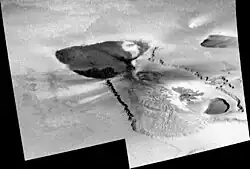 A pluma de erupção do vulcão Pele, em erupção aquando a Voyager 2 alcançou esse indescritível mundo, subia cerca de 275 km, quatro meses depois da passagem da Voyager 1. Pele é, também, a formação mais característica dessa lua.