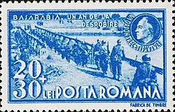 Depois de se tornar o primeiro romeno a receber a Cruz de Cavaleiro da Cruz de Ferro, que recebeu de Hitler em seu encontro de 6 de agosto na cidade ucraniana de Berdychiv, Antonescu foi promovido a Marechal da Romênia por decreto real em 22 de agosto, em reconhecimento por seu papel na restauração das fronteiras orientais da Grande Romênia . [162] Em um relatório para Berlim, um diplomata alemão escreveu que o marechal Antonescu tinha sífilis e que "entre os oficiais de cavalaria [romenos] esta doença é tão disseminada quanto um resfriado comum entre os oficiais alemães. O marechal sofre ataques severos dela a cada vários meses." [163] Antonescu tomou uma de suas decisões mais debatidas quando, com a conquista da Bessarábia quase completa, ele comprometeu a Romênia com o esforço de guerra de Hitler além do Dniester — isto é, além do território que havia sido parte da Romênia entre as guerras — e avançou mais profundamente no território soviético, travando assim uma guerra de agressão. [164] [165] Em 30 de agosto, a Roménia ocupou um território que considerou "Transnístria", anteriormente parte da RSS da Ucrânia (incluindo toda a RSS da Moldávia e outros territórios). [164] [166] Tal como a decisão de continuar a guerra para além da Bessarábia, esta decisão valeu a Antonescu muitas críticas por parte do PNL e do PNȚ, ambos semiclandestinos. [164] Na medida em que a guerra contra a União Soviética era uma guerra para recuperar a Bessarábia e o norte da Bucovina – ambas as regiões que fizeram parte da Roménia até Junho de 1940 e que tinham maiorias romenas – o conflito tinha sido muito popular junto da opinião pública romena. [167] Mas a ideia de conquistar a Transnístria não surgiu, uma vez que essa região nunca tinha feito parte da Roménia e uma minoria da população era de etnia romena. [167] Logo após a tomada, a área foi atribuída a um aparato de administração civil liderado por Gheorghe Alexianu e se tornou o local do principal componente do Holocausto na Romênia: uma deportação em massa de judeus bessarábios e ucranianos, seguida mais tarde por transportes de romenos e judeus da própria Moldávia (ou seja, as porções da Moldávia a oeste do Prut).