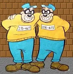 - Os Irmãos Metralhas fizeram sua estréia animada no curta de 1987 estrelado por Pateta, Sport Goofy in Soccermania, com a voz de Will Ryan. Ao contrário das suas encarnações de DuckTales, os Irmãos Metralhas são descritos como idênticos na aparência e no comportamento, embora faltando os números da prisão de suas contrapartes nos quadrinhos.