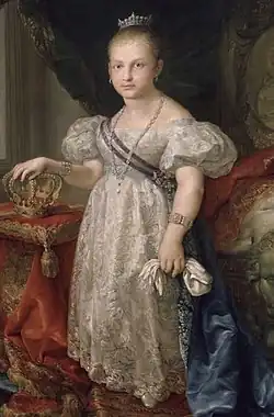 Nesta altura, na Espanha ainda vigorava a lei sálica, introduzida em 1713 por Filipe V, que proibia a sucessão feminina ao trono — apesar dos esforços do rei Carlos IV em revogar tal lei, que chegou até mesmo a ser ratificada pelas Cortes em 1789. Mas, devido aos acontecimentos conturbados das Guerras Revolucionárias Francesas e posteriores Guerras Napoleônicas, a lei não chegou a ser promulgada.[4] Entretanto, ainda em 1830 o rei promulgou a Pragmática Sanção, para que a filha primogênita — e não seu irmão, o infante Dom Carlos Maria Isidro da Espanha, conde de Molina, pudesse herdar o trono.[5][6]