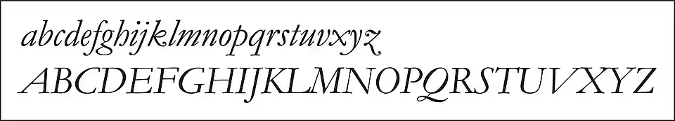 Diferentemente dos tipos itálicos de hoje, as letras maiúsculas eram capitais romanas verticais, mais curtas que os ascendentes das letras itálicas minúsculas e eram produzidas cerca de 65 letras com (ligaturas) nos livros Dante e Virgílio Aldinos de 1501.