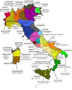 Há uma notável diferença genética entre os sardos, os italianos do norte e os italianos do sul. Os nativos do norte da Itália estão mais próximos aos espanhóis e occitanos,[7][8][9][10] enquanto os do sul da Itália estão mais próximos aos gregos.[11] No entanto, a distância genética entre os italianos do norte e do sul, embora grande do ponto de vista da “nacionalidade”, é aproximadamente igual à dos alemães do norte e do sul da Alemanha.[12] O fosso genético entre os italianos do norte e do sul é preenchido por um aglomerado intermediário do centro da Itália, criando uma linha contínua de variação na Península Itálica e nas ilhas (com os sardos como isolados), que espelha a geografia.[13]