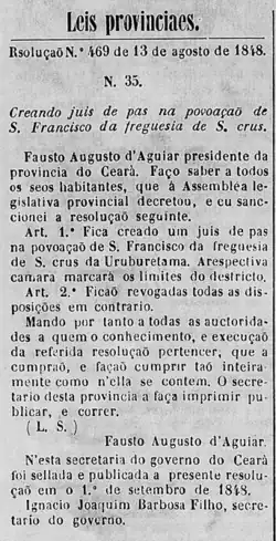 - 1849: Vila da Constituinte (atual Santa Cruz, Itapajé), elevado à categoria de município;[19]