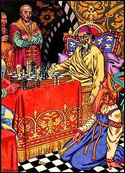 O Czar Ivã IV admira sua sexta esposa, Basília Melentyeva. Pintura de 1875, por Grigory Semyonovich Sedov