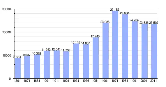 | Variação demográfica do município entre 1861 e 2011[3] |
