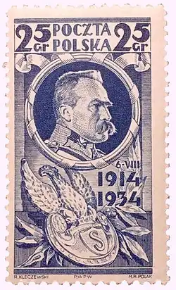 Piłsudski foi Chefe de Estado da Polônia de novembro de 1918, quando a Polônia recuperou sua independência, até 1922. De 1919 a 1921, ele comandou as forças polonesas em seis guerras que redefiniram as fronteiras do país. À beira da derrota na Guerra Polaco-Soviética em agosto de 1920, suas forças repeliram os invasores russos soviéticos na Batalha de Varsóvia. Em 1923, com um governo dominado por seus oponentes, em particular os Democratas Nacionais, Piłsudski se aposentou da política ativa. Três anos depois, ele retornou ao poder no Golpe de Maio e se tornou o homem forte do governo Sanacja. [1] [2] [3] Ele se concentrou em assuntos militares e estrangeiros até sua morte em 1935, desenvolvendo um culto à personalidade que sobreviveu até o século XXI.