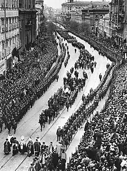 Em 8 de novembro de 1918, três dias antes do Armistício, Piłsudski e seu colega, o Coronel Kazimierz Sosnkowski, foram libertados pelos alemães de Magdeburg e logo colocados em um trem com destino à capital polonesa, Varsóvia - os alemães em colapso esperando que Piłsudski criasse uma força amiga deles. [52]
