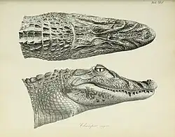 - ↑ Boulenger GA (1889). Catalogue of the Chelonians, Rhynchocephalians, and Crocodiles in the British Museum (Natural History). New Edition. London: Trustees of the British Museum (Natural History). (Taylor and Francis, printers). x + 311 pp. + Plates I-III. (Caiman niger, pp. 292-293).