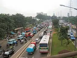Apesar da presença de muitas estradas largas, Jacarta sofre com o congestionamento devido ao tráfego pesado, especialmente centro comercial da cidade. Para reduzir os congestionamentos, algumas estradas principais em Jacarta têm uma lei "três em um" durante as horas de pico, introduzidas primeiramente em 1992, proibindo menos de três passageiros por carro em determinadas estradas. Em 2005, esta lei também passou a valer na estrada de Gatot Subroto.