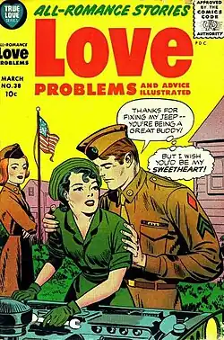 A equipe encontrou seu maior sucesso no período pós-guerra, criando quadrinhos românticos. Simon, inspirado em histórias [confessionais da revista True Story da Macfadden Publications, transplantou a ideia para histórias em quadrinhos e, com Kirby, criou um o primeiro número de Young Romance. Mostrando ao gerente geral da Crestwood, Maurice Rosenfeld, Simon pediu 50% dos lucros da revista. Os editores da Crestwood, Teddy Epstein e Mike Bleier, concordaram,[36] estipulando que os criadores não receberiam dinheiro adiantado.[37] Young Romance # 1 (outubro de 1947) "tornou-se o maior sucesso de Jack e Joe em anos".[38] O título pioneiro vendeu impressionantes 92% de sua tiragem, inspirando Crestwood a aumentar a tiragem da terceira edição para triplicar o número inicial de cópias. Inicialmente publicado bimestralmente, Young Romance logo se tornou um título mensal e produziu o spin-off Young Love - juntos os dois títulos venderam dois milhões de cópias por mês, segundo Simon[39] - mais tarde vieram, Young Brides e In Love, esta última com longas histórias de romance ".[40] Young Romance gerou dezenas de imitadores de editoras como Timely, Fawcett, Quality e Fox Feature Syndicate. Apesar do excesso, os títulos românticos de Simon e Kirby continuaram a vender milhões de cópias por mês.[38]