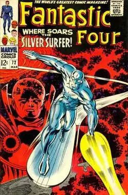 A história frequentemente citada como a melhor realização de Lee e Kirby[81][82] é a trilogia de três partes Galacuts Trilogy que começou em Fantastic Four #48 (março de 1966), narrando a chegada de Galactus, um gigante cósmico que queria devorar o planeta e seu arauto, o Surfista Prateado.[83][84] Fantastic Four #48 foi escolhida como vigésima quarta na pesquisa 100 Greatest Marvels of All Time pelos leitores da Marvel em 2001. O editor Robert Greenberger escreveu em sua introdução à história que "Quando o quarto ano do Quarteto Fantástico chegou ao fim, Stan Lee e Jack Kirby pareciam estar apenas se aquecendo. Em retrospecto, talvez tenha sido o período mais fértil de qualquer título mensal durante a Era Marvel".[85] O historiador de quadrinhos Les Daniels observou que" os elementos místicos e metafísicos que assumiu a saga eram perfeitamente adequados ao gosto dos jovens leitores nos anos 1960 ", e Lee logo descobriu que a história era uma das favoritas nos campi universitários.[86] Lee e o desenhista John Buscema lançaram a série The Silver Surfer em agosto de 1968.[87][88] Kirby continuou a expandir os limites da mídia, concebendo capas e interiores de fotos-colagem, desenvolvendo novas técnicas de desenho, como o método para representar campos de energia agora conhecidos como "Kirby Krackle", e outros experimentos.[89]