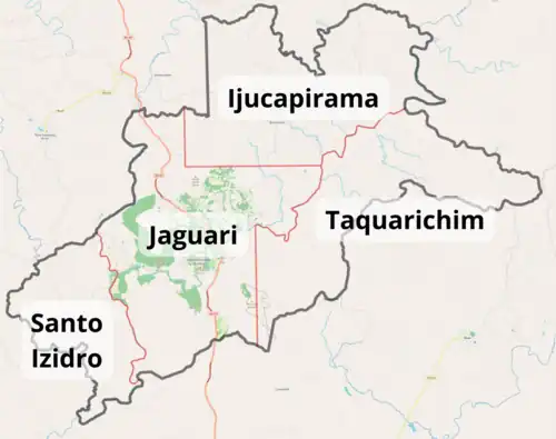- ↑ «IBGE Cidades - Jaguari». IBGE. Instituto Brasileiro de Geografia e Estatística (IBGE). 2017. Consultado em 17 de outubro de 2021