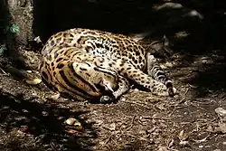 - ↑ «Ocelot, Leopardus pardalis». San Diego Zoo Global. 2011. Consultado em 25 de dezembro de 2013. Cópia arquivada em 31 de outubro de 2013