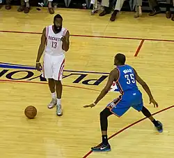 Harden foi negociado com o Houston Rockets na temporada 2012–13, onde tornou-se um dos maiores cestinhas da NBA e ganhou reconhecimento como o melhor ala-armador da liga.[3] Ele participou nove vezes do All-Star Game da NBA e esteve presente seis vezes no All-NBA Team — uma vez na terceira equipe (2013) e seis vezes na primeira equipe (2014, 2015, 2017–2020). Harden venceu o prêmio de MVPs da NBA na temporada 2017–18.