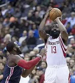 Em 9 de dezembro, ele marcou 48 pontos para ajudar os Rockets a vencer o Portland Trail Blazers por 124-117,[73] marcando pelo menos 20 pontos em cada um dos 24 jogos do Houston, tornando-se apenas o segundo jogador a realizar tal feito desde a temporada de 1990-91. Em 20 de dezembro, apesar dos 51 pontos de Harden, os Rockets foram derrotados por 122-116 pelo Los Angeles Lakers, encerrando sua seqüencia de 14 vitórias consecutivas.[74] Harden estabeleceu um recorde na franquia ao marcar pelo menos 20 pontos em seu 30ª jogo consecutivo. O recorde anterior era de Malone, que o fez em 29 jogos consecutivos na temporada de 1981-82. Dois dias depois, Harden teve uma segunda performance consecutiva de 51 pontos na derrota por 128-118 para o Los Angeles Clippers.[75] Foi o terceiro jogo de 50 pontos de Harden na temporada e ele se tornou o primeiro jogador na história da franquia a ter dois jogos consecutivos de 50 pontos. Ele também se tornou o primeiro jogador da NBA a marcar 50 ou mais em jogos consecutivos desde que Kobe Bryant fez isso em quatro jogos consecutivos em março de 2007.
