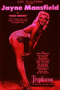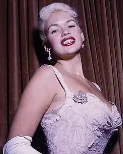 Mansfield assumiu seu primeiro papel principal no cinema como Jerri Jordan em The Girl Can't Help It (1956), de Frank Tashlin.[53] Originalmente intitulado Do-Re-Mi, o filme contou com um elenco de destaque de artistas contemporâneos de rock and roll e R&B, incluindo Gene Vincent, Eddie Cochran, Fats Domino, The Platters e Little Richard.[54] Lançado em dezembro de 1956, The Girl Can't Help It tornou-se um dos maiores sucessos do ano, tanto de crítica quanto de bilheteria, arrecadando mais do que Gentlemen Prefer Blondes havia arrecadado três anos antes.[55]