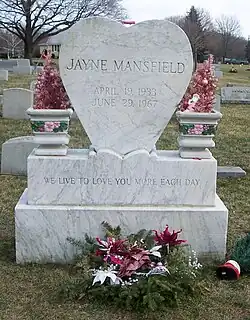 Jayne Mansfield (nascida Vera Jayne Palmer; Bryn Mawr, Pensilvânia, 19 de abril de 1933 – U.S. Route 90, perto de Slidell, Luisiana, 29 de junho de 1967) foi uma atriz estadunidense de cinema e teatro. Ela era conhecida por suas inúmeras manobras promocionais, por sua figura voluptuosa e por sua vida pessoal. Sua carreira no cinema foi curta, mas ela ganhou um Theatre World Award[1] e um Globo de Ouro.[2] Mansfield conquistou a reputação de ser a “loira burra mais inteligente” de Hollywood.[3]