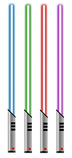 O sabre pode ser azul, verde, (raros jedis), roxo, laranja, lilás, preto, branco ou amarelo (só um jedi usa essa cor). Já um Lorde Sith usa um sabre vermelho. Existem certos sabres raros, como o Manto da Força, sabre azul-claro.
