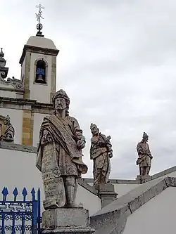 O profeta Jeremias (na frente) feito em pedra sabão por Aleijadinho no adro do Santuário do Bom Jesus de Matosinhos em Congonhas do Campo