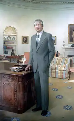 James Earl Carter Jr. (Plains, 1 de outubro de 1924 – Plains, 29 de dezembro de 2024)[1] foi um político e filantropo norte-americano, que serviu como 39.° presidente dos Estados Unidos de 1977 a 1981.[2] Oriundo de uma tradicional família fazendeira sulista, Carter serviu como oficial da Marinha dos Estados Unidos e depois ingressou na política, cumprindo dois mandatos como senador do estado da Geórgia e um como governador (1971–1975) antes de se candidatar à presidência em 1976.[3]
