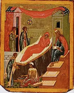 Durante a semana em que servia no Templo, enquanto queimava incenso Zacarias recebeu uma profecia do arcanjo Gabriel, que anunciou a concepção sua esposa, mesmo em idade avançada. O anjo também revelou que o menino se chamaria João e que seria um grande profeta, que prepararia o caminho para o Messias. Inicialmente, Zacarias duvidou das palavras de Gabriel e ficou mudo como sinal de sua incredulidade, sendo incapaz de abençoar a multidão que o esperava fora do Templo. Gabriel então o advertiu que recuperaria a fala apenas quando o menino nascesse e fosse circuncidado. Depois que Maria descobriu que sua parente Isabel estava grávida, ela veio visitá-la , e aconteceu que, ao ouvir Isabel a saudação de Maria, a criancinha saltou no seu ventre; e Isabel foi cheia do Espírito Santo”.[18]