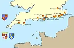 No contexto da Guerra dos Cem anos, Henrique II havia recebido a ajuda de cavaleiros franceses dirigidos pelo próprio Bertrand du Guesclin durante o seu confronto com Pedro I de Castela (Pedro, o Cruel ou o Justiceiro). A vitória final de Henrique na Guerra Civil Castelhana propiciou a França um poderoso aliado no plano naval. Tanto Henrique como seu filho João enviaram a Armada castelhana às costas da Mancha, de que resultou a destruição da esquadra inglesa em La Rochelle (1372) e o saque ou incêndio de numerosos portos ingleses (Rye, Rottingdean, Lewes, Folkestone, Plymouth, Portsmouth, Wight, Hastings) em 1374 e (após a Trégua de Bruges) entre 1377 e 1380, ano em que a frota combinada do almirante castelhano Fernando Sánchez de Tovar e do francês Jean de Vienne chegou mesmo a ameaçar Londres. Richard Knolles em 1360 e o duque de Lancaster, João de Gante, em 1363, formaram corpos expedicionários que atacaram o continente, mas foram detidos.