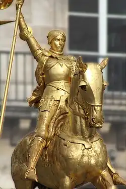 O legado inicial de Joana estava intimamente associado ao direito divino da monarquia de governar a França.[325] Durante a Revolução Francesa, sua reputação foi questionada devido à sua associação com a monarquia e a religião,[326] e o festival em sua homenagem realizado em Orleães foi suspenso em 1793.[327] Em 1803, Napoleão Bonaparte autorizou sua renovação[328] e a criação de uma nova estátua de Joana em Orleães, afirmando: "A ilustre Joana ... provou que não há milagre que o gênio francês não possa realizar quando a independência nacional está ameaçada."[329]