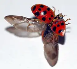 ![]() Joaninha a exibir o seu corpo semiesférico, típico da família Coccinellidae. | |||||||||||||||||||||||||||