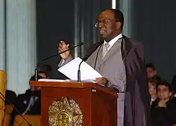 Joaquim Benedito Barbosa Gomes GOMM (Paracatu, 7 de outubro de 1954) é um jurista e ex-magistrado brasileiro.[3] Foi ministro do Supremo Tribunal Federal de 2003 até 2014, tendo sido presidente do tribunal de 2012 a 2014.[4][5][6] Foi filiado ao Partido Socialista Brasileiro (PSB) entre 2018 e 2022.[7] Atualmente, é advogado.[8]