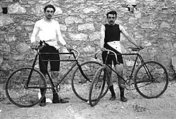 Léon Flameng e Paul Masson, ciclistas franceses vencedores de quatro provas do ciclismo em Atenas