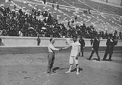 Além dos dois competidores gregos, todos os concorrentes tinham anteriormente praticado outros esportes. O campeão de halterofilismo Launceston Elliot enfrentou o campeão da ginástica Carl Schuhmann. Este último venceu e avançou para a final, onde se encontrou com Georgios Tsitas, que já havia derrotado Stephanos Christopoulos. A escuridão do anoitecer forçou a paralisação do confronto depois de quarenta minutos. Retomada no dia seguinte, Schuhmann precisou apenas de 15 minutos para vencer seu adversário.[38]