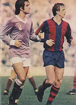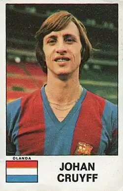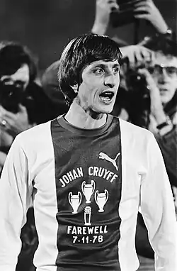 Hendrik Johannes "Johan" Cruijff OCO (Amesterdã, 25 de abril de 1947 – Barcelona, 24 de março de 2016) foi um treinador e futebolista neerlandês que atuou como atacante. Tido como um jogador revolucionário, tático, ofensivo, coletivo, vistoso e eficiente e ele é o inventor do futebol moderno. Inspirou muitos jogadores e treinadores a partir de suas extraordinárias atuações no Ajax, Barcelona (como Xavi, Iniesta, Messi e Pep Guardiola) e principalmente, na Seleção Neerlandesa durante a Copa do Mundo FIFA de 1974. As suas atuações no mundial foram suas únicas referências para grande parte das pessoas que o conhecem;[4] antes da cobertura ao vivo dos campeonatos estrangeiros pela televisão, apenas as Copas eram vistas mundialmente de maneira especial.[5] Cruijff encantou na Copa, mesmo com exibições consideradas abaixo das que tinha nos campeonatos europeus.[4]