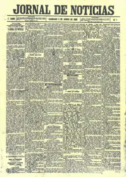 O Jornal de Notícias foi fundado por José Diogo Arroio (o seu primeiro director), Manuel Vaz de Miranda e Aníbal da Costa Morais, tendo a sua edição inaugural (de 4 páginas e tiragem de 7500 exemplares) sido posta à venda no dia 2 de junho de 1888, por 10 réis.[2] Os membros fundadores eram figuras do Partido Regenerador, sendo este um periódico monárquico que se afirmava como um jornal preponderantemente noticioso e objectivo, apesar dos constantes ataques contra o governo progressista. Publicava notícias nacionais e internacionais, com uma página de anúncios publicitários.[3][4][5]