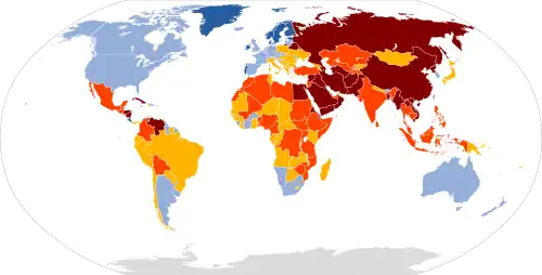 - ↑ «Scores and Status Data 1980-2015». Freedom of the Press 2015. Freedom House. Consultado em 12 de junho de 2015