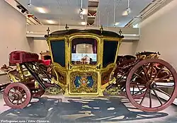 Coche da Mesa (séc. XVIII) no Museu Nacional dos Coches, o veículo utilizado durante a Troca das Princesas