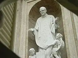 - No dia 30 de agosto de 2005, o então Papa Bento XVI presidiu a cerimônia de entronização de uma estátua de mármore de 5 metros de altura num dos nichos da fachada externa esquerda da Basílica de São Pedro, reservados por São João Paulo II para santos fundadores de instituições da Igreja Católica no século XX. A estátua é obra do escultor italiano Romano Cosci, e representa o santo revestido com paramentos para a Missa, rodeado de 2 anjos.
