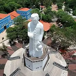 Juazeiro do Norte era inicialmente um distrito da cidade vizinha Crato, até que o jovem Padre Cícero Romão Batista resolveu se fixar como pároco no lugarejo, até então sem capelão e, portanto, sem os serviços religiosos. Padre Cícero, nascido em 24 de março de 1844, foi um dos responsáveis, tempos depois, pela emancipação e independência da cidade.[17] Por conta do chamado "milagre em Juazeiro" (quando Padre Cícero deu a hóstia sagrada à beata Maria de Araújo, a hóstia se transformou em sangue), a figura do padre assumiu características místicas e passou a ser venerado pelo povo como um santo. Hoje a cidade é a terceira do estado e referência no Nordeste graças ao padre.