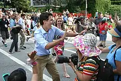 Em 19 de outubro de 2015, após a campanha oficial mais longa em mais de um século, Trudeau conduziu os Liberais a uma vitória decisiva na eleição federal. Os Liberais conquistaram 184 dos 338 assentos, com 39,5% do voto popular, formando um governo de maioria robusta;[149][150] representando um ganho de 150 assentos em relação à eleição federal de 2011.[149]
