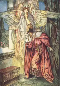 Uma ilustração do livro de um anjo mostra um modelo de Hagia Sophia para Justiniano em uma visão.